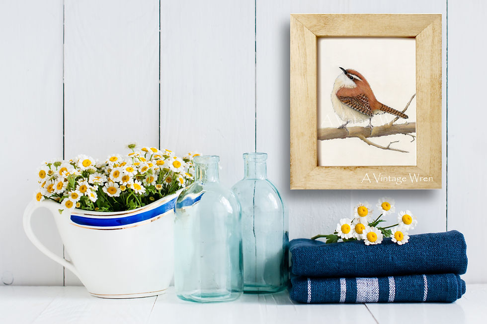 The background is dry brushed in blue, green, yellow or white with a gray wash over to give it a rustic, aged look.